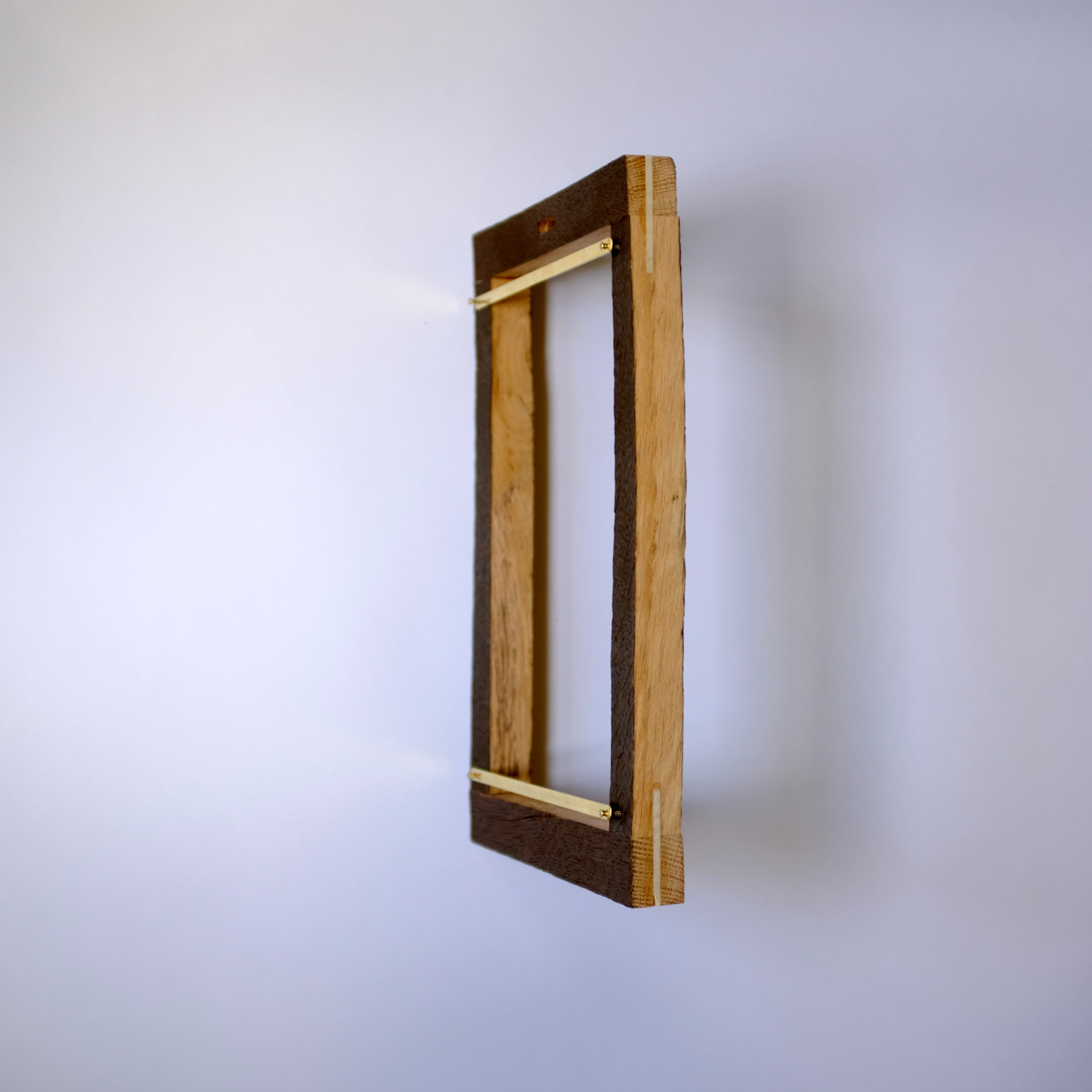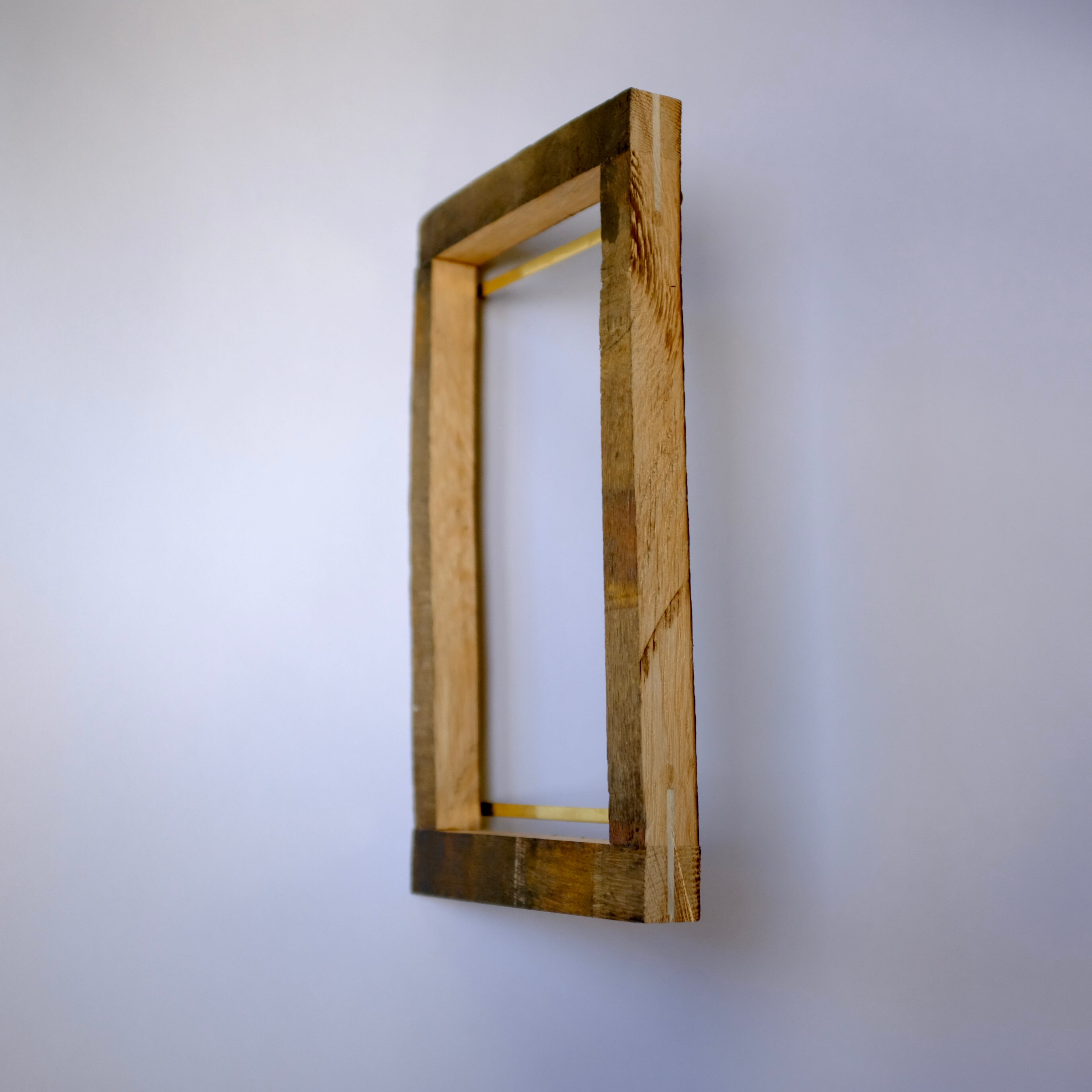 ウッドフレームは、ウヰスキーの熟成樽としてその役割を全うした廃材木を”再整形”したものです。焦げ目や汚れ・傷など樽の表情を出来る限り残した仕上げになっています。