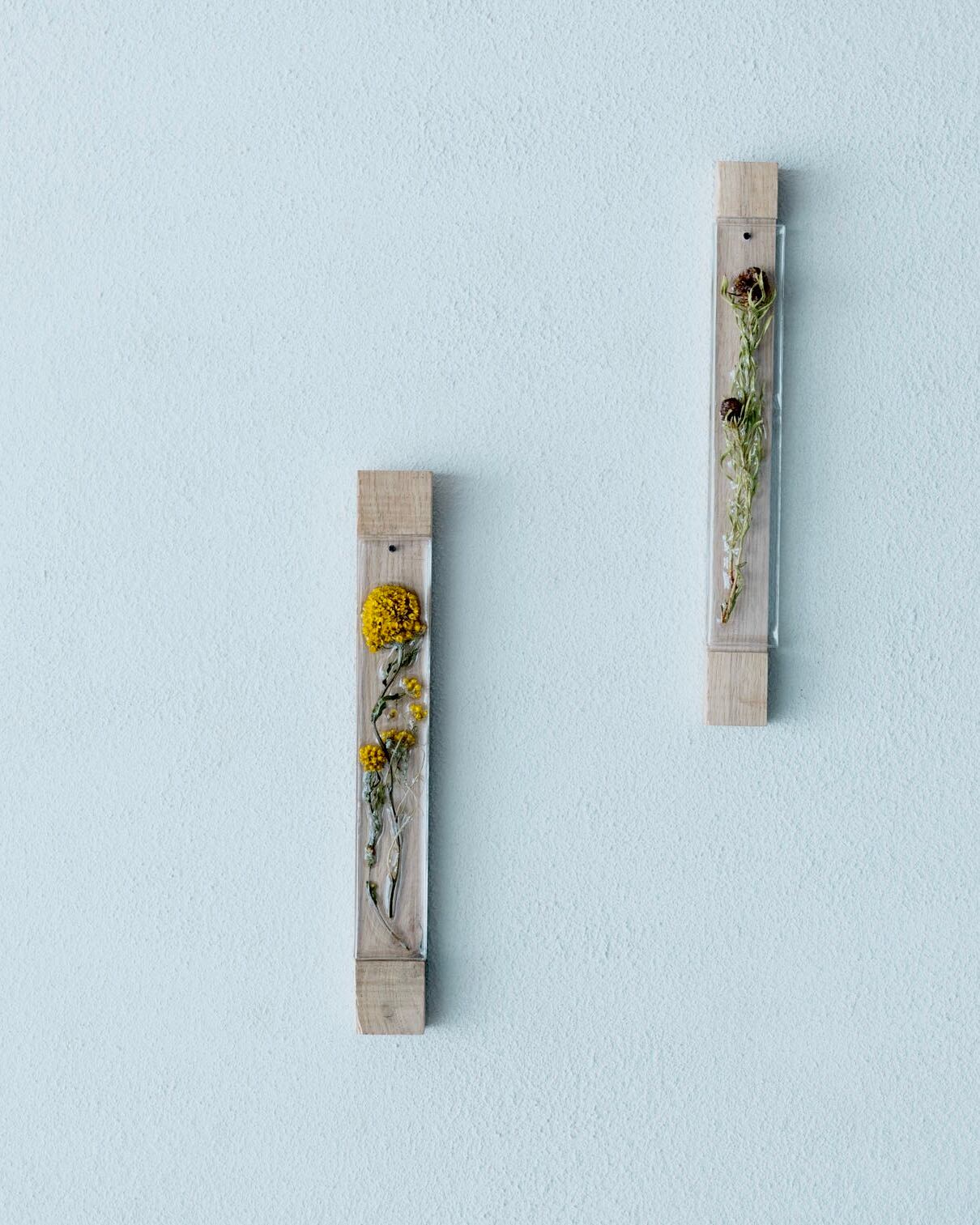 素材:ミズナラ材/アクリル/エポキシ樹脂/ドライフラワー