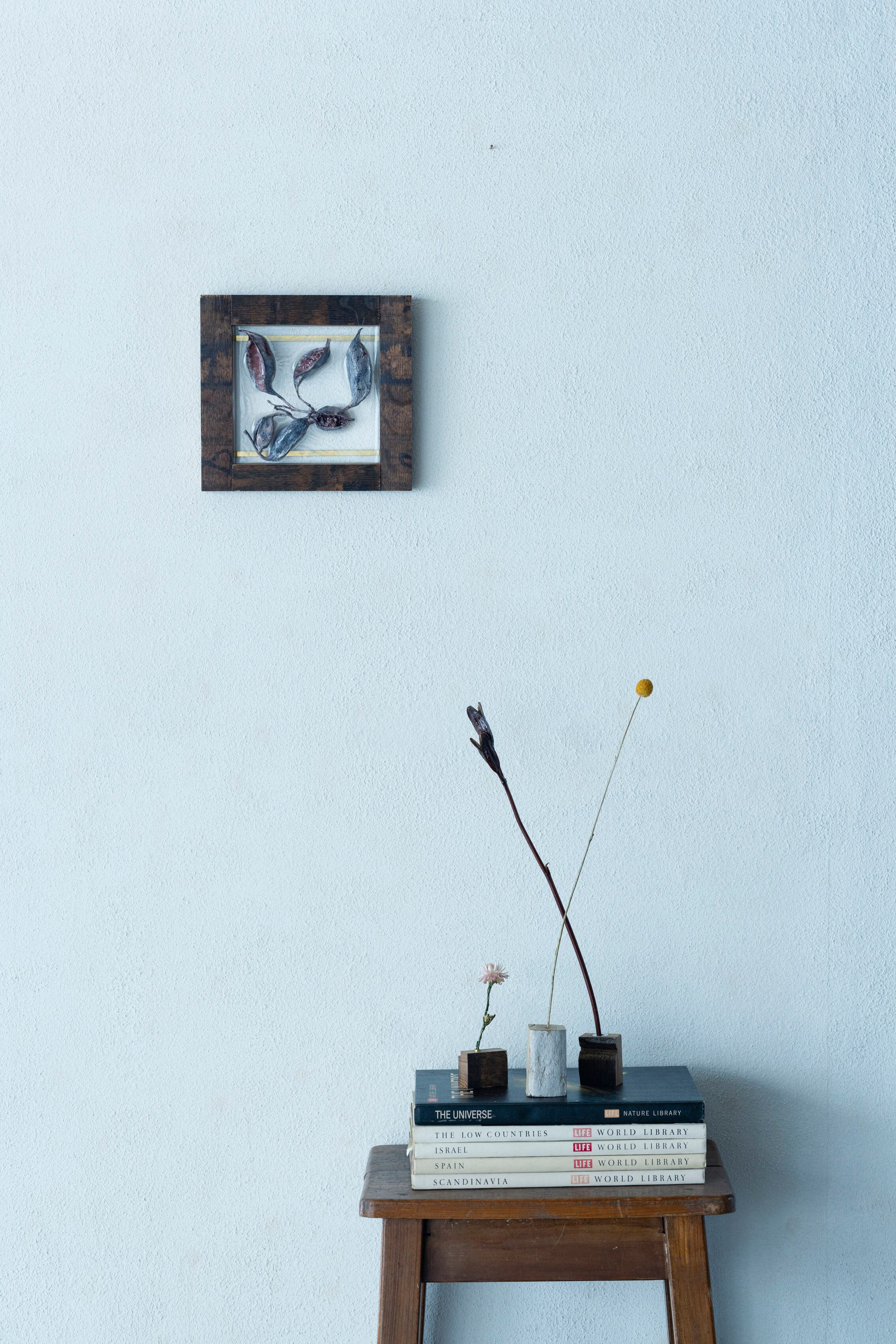 素材:ミズナラ材/アクリル/エポキシ樹脂/ドライフラワー